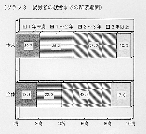 帰国者本人の就労状況を帰国後経過期間別にみると,帰国後年数を経る毎にその割合は増加している。