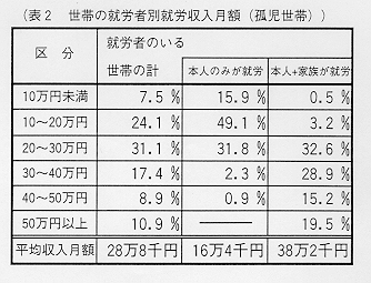 《表2 世帯の就労者別就労収入月額(孤児世帯)》