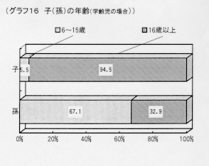 帰国者の子の年齢では,16歳以上の者が全体の94.5%を占めており,学齢児に相当する6歳から15歳の者の割合は5.5%となっている。 又,孫の年齢では,16歳以上の者が全体の32.9%を占めており,学齢児に相当する6歳から15歳の者の割合は67.1%となっている。 《グラフ16 子(孫)の年齢(学齢児の場合)》 帰国者の子又は孫が小学校,中学校又は高等学校に編入する際「問題がなかった」と答えた者が86.4%となっている。 《グラフ17 子又は孫の編入学時の問題》