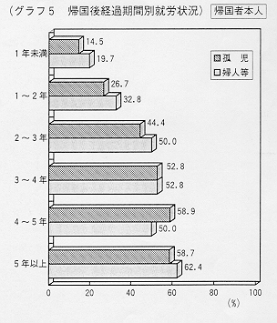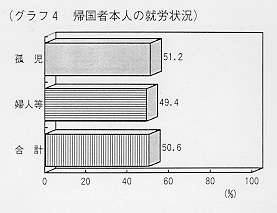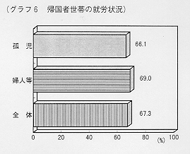 また,婦人等は69.0%が就労しており,孤児に比してその割合は高くなっている。 なお,帰国者世帯の就労率は,配偶者や子が就労している世帯があるので,帰国者本人の就労率(グラフ4)に比し高くなっている。