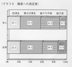 就労者のうちで帰国者本人については57.6%が,家族全体では60.6%の者が調査時の職業に「満足している」又は「ほぼ満足している」と答えている。