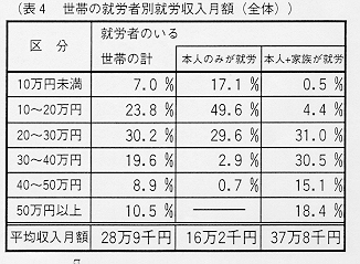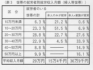 《表3 世帯の就労者別就労収入月額(婦人等世帯)》