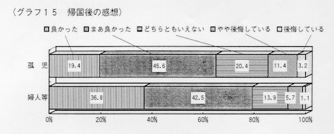 帰国後の感想では,「良かった」又は「まあ良かった」と答えているのが,孤児では65.0%となっており,婦人等でその割合は79.3%となっている。
